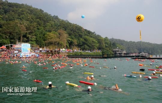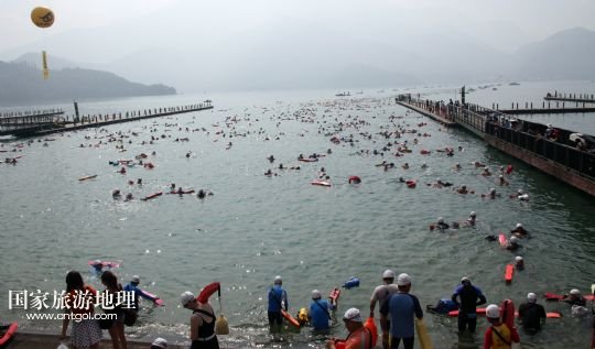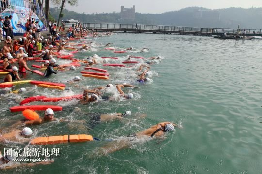 摘要:在位于臺灣中部南投縣的著名風(fēng)景區(qū)日月潭,千余名游泳愛好者從朝霧碼頭下水,游到對岸的伊達邵碼頭,拉開臺灣萬人橫渡日月潭活動的序幕。一年一度的萬人橫渡日月潭活動將于9月8日正式舉行。
