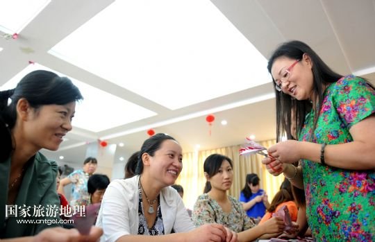 國家旅游地理 安徽合肥9月17日訊 9月17日,非遺剪紙傳人侯宏妹向?qū)W員講解“花好月圓”剪紙作品的制作。當(dāng)日,合肥市清溪路社區(qū)邀請(qǐng)非物質(zhì)文化遺產(chǎn)剪紙傳人侯宏妹來到社區(qū)向剪紙愛好者傳授技藝,并一起創(chuàng)作中秋題材的剪紙作品,迎接中秋佳節(jié)。 /新華社記者劉軍喜攝