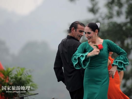 國(guó)家旅游地理 湖北宜昌9月17日訊 9月17日,宜昌長(zhǎng)陽(yáng)土家族藝術(shù)團(tuán)在現(xiàn)場(chǎng)表演。當(dāng)日,部分來自澳大利亞、西班牙、俄羅斯、捷克、蒙古國(guó)的藝術(shù)團(tuán)來到湖北宜昌清江畫廊景區(qū),與當(dāng)?shù)厥忻襁M(jìn)行民俗藝術(shù)表演交流。