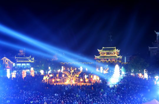 摘要:農(nóng)歷元宵節(jié),在湖南鳳凰古鎮(zhèn),當(dāng)?shù)鼐用衽c游客歡聚一堂,共同參與各種民俗文化表演活動,慶祝節(jié)日。