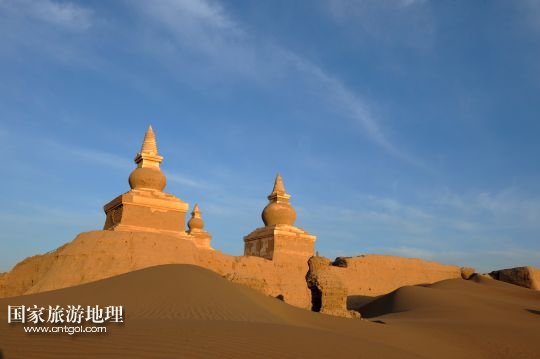 國家旅游地理 內(nèi)蒙古阿拉善4月22日訊 夕陽中的內(nèi)蒙古阿拉善盟額濟納旗黑城遺址(4月18日攝)。地處內(nèi)蒙古自治區(qū)最西端的阿拉善盟,著名的巴丹吉林、騰格里、烏蘭布和三大沙漠橫貫全境,沙漠、胡楊、戈壁、巖畫、湖泊、古城描繪出27萬平方公里蒼茫雄渾的大漠神韻,構(gòu)成了獨具特色的沙漠文化旅游資源。 /新華社記者 張領(lǐng) 攝