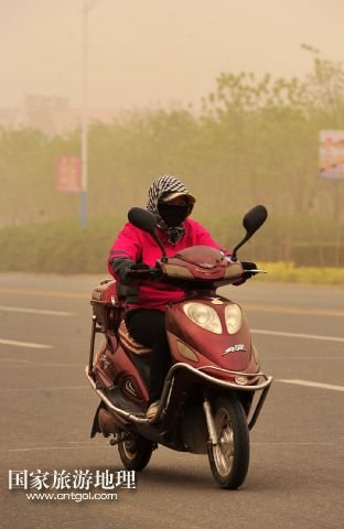 國家旅游地理 寧夏中衛(wèi)4月24日訊 4月24日,在寧夏回族自治區(qū)中衛(wèi)市,一位市民在沙塵天氣中騎行。當(dāng)日,寧夏回族自治區(qū)中北部地區(qū)遭遇強(qiáng)沙塵天氣,寧夏氣象臺于當(dāng)日7時40分發(fā)布沙塵暴黃色預(yù)警信號:預(yù)計未來12小時內(nèi)全區(qū)大部有5-6級偏北風(fēng),陣風(fēng)7-8級,伴有揚(yáng)沙或浮塵天氣,銀川、石嘴山、吳忠、中衛(wèi)四市的部分地區(qū)可能出現(xiàn)能見度小于1000米的沙塵暴天氣。 /新華社記者 彭昭之 攝