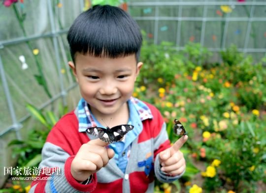 國(guó)家旅游地理 浙江杭州4月27日訊 4月27日,一名小朋友在“蝴蝶谷”觀賞落在手上的蝴蝶。當(dāng)日,位于浙江杭州江洋畈生態(tài)公園的“蝴蝶谷”對(duì)外開放,50多個(gè)品種的600多只蝴蝶在“蝴蝶谷”翩翩起舞,吸引了眾多游客前來觀賞。 /新華社發(fā)(施健學(xué) 攝)