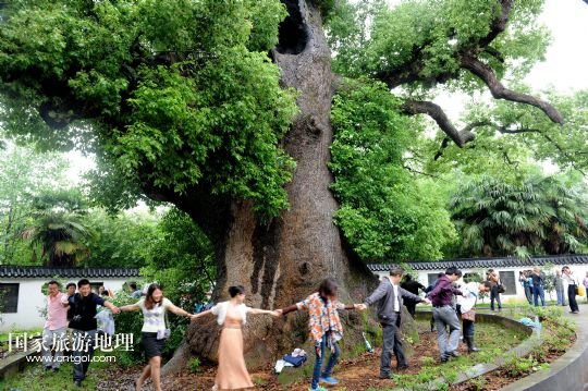 國家旅游地理 江西上饒5月18日訊 5月17日,游客在江西省德興市??阪?zhèn)海口村千年古樟旁玩耍。江西省德興市??阪?zhèn)??诖逵幸豢?800多歲“高齡”的巨型古樟樹,歷史上曾遭受過多次雷擊、火災(zāi)等,其中最近的一次發(fā)生在2010年10月1日,由于村內(nèi)孩童進入可容納幾十人的樹洞內(nèi)玩耍,不慎引發(fā)火災(zāi),致使大火從樹洞里燒起,讓這棵千年古樟幾近滅頂。此后,當(dāng)?shù)卮迕褡园l(fā)捐款近6萬元,請來有關(guān)專家救治。經(jīng)過近4年的精心護救,如今這棵千年古樟再度逢春,枝繁葉茂,吸引了各方游客前來觀賞。 /新華社發(fā)(卓忠偉 攝)