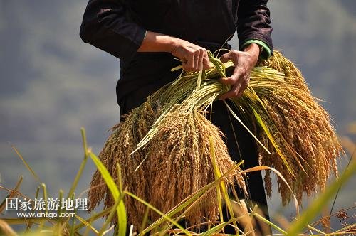 國家旅游地理 貴州黔東南10月11日訊 10月10日,在貴州省黎平縣順化瑤族鄉(xiāng)高孖村,瑤族群眾在收獲香禾糯。2013年以來,貴州省黔東南苗族侗族自治州黎平縣充分利用當?shù)氐锰飒毢竦纳鷳B(tài)環(huán)境,采用傳統(tǒng)選育技術,大量種植香禾糯。日前,當?shù)剞r(nóng)戶今年種植的5萬畝香禾糯喜獲豐收。香禾糯是貴州省黎平縣國家地理標志保護產(chǎn)品,是當?shù)馗髯迦嗣裨陂L期的生產(chǎn)生活中選育栽培出來的優(yōu)良糯稻品種。新華社發(fā)(楊代富 攝)