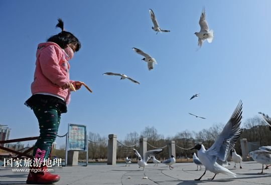國家旅游地理 寧夏銀川3月10日訊 3月9日,在銀川市燕鴿湖,一位小朋友在喂食紅嘴鷗。近日,隨著寧夏銀川市各湖泊、濕地冰面融化,銀川市興慶區(qū)燕鴿湖迎來數(shù)百只紅嘴鷗在湖面飛翔覓食。近年來,銀川市持續(xù)加大對濕地的保護與恢復,每年春季都有大批候鳥光顧,成為銀川市一道美麗風景。 /新華社記者 王鵬 攝