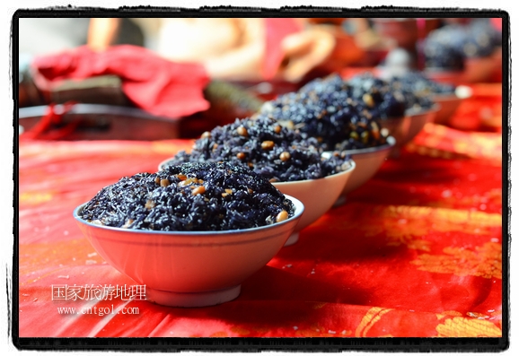 國家旅游地理 江西婺源(上饒)5月31日訊(特約記者王國紅 通訊員程新德攝影報道) “祭祀開始、鳴炮奏樂、祭拜、主持人講話、結(jié)束鳴炮”,5月25日,農(nóng)歷四月初八,石佛村烏飯節(jié),村民將自家精心制作的烏飯端進祠堂祭祀。江西省婺源縣段莘鄉(xiāng)石佛村每年都要舉行烏飯祭祖活動,各家各戶將自家精心制作的烏飯端進祠堂……