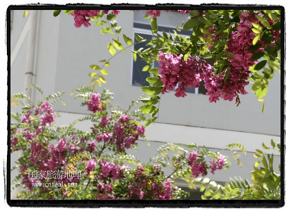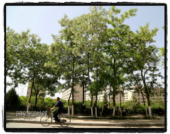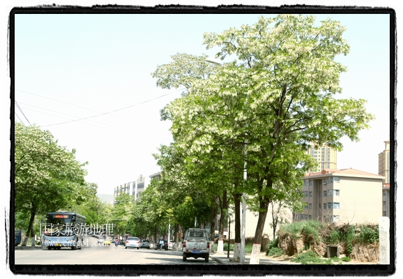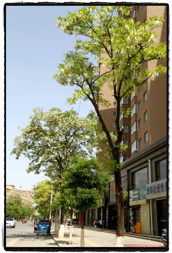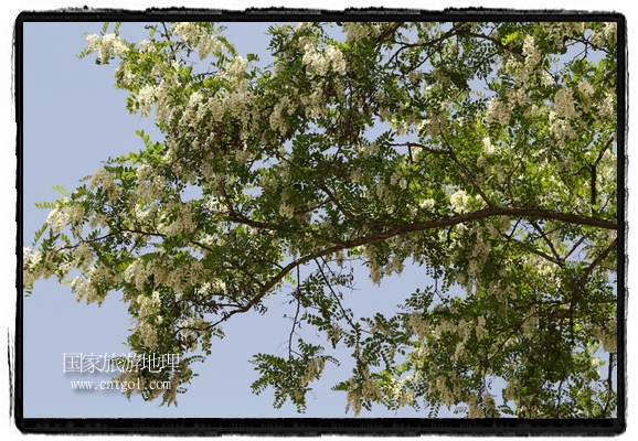 國家旅游地理 甘肅平?jīng)?月31日訊(通訊員 鄭兵 攝影報道)日前,甘肅省平?jīng)鍪谐菂^(qū)各大主要街道兩旁的槐樹開滿花朵,一簇一簇,一串一串,白的像雪,美得像畫,冰肌綽約,清素高雅,滿街道彌漫著槐花的馥郁香氣,讓來往的行人為之陶醉。宋朝大文豪蘇東坡曾有詩云:“槐林五月蕩瓊花,郁郁芬芳醉萬家。”據(jù)悉,槐花除了觀賞意外,用槐花做的湯飯還有開胃解毒瀉火等功效,是食藥兩用的的極品,被譽(yù)為“天賜的禮物”。