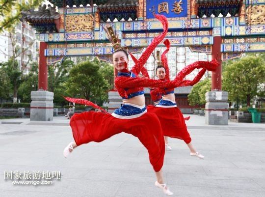 國家旅游地理 山東滕州6月14日訊 6月13日,在山東省滕州市老縣衙善國文化廣場(chǎng),滕州柳琴劇團(tuán)演員向市民展演柳琴戲。