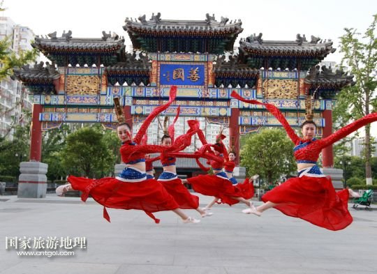 6月13日,在山東省滕州市魯班紀(jì)念館前,滕州柳琴劇團(tuán)演員在彩排柳琴戲《墨子與魯班》。
