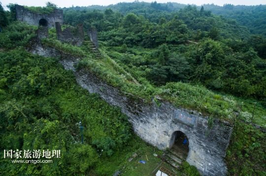 國家旅游地理 德國波恩7月4日訊 從空中看貴州播州海龍屯飛鳳關(guān)(7月3日攝)。海龍屯遺址位于遵義老城北約30里的龍巖山東麓,始建于1257年,毀于1600年。遺址所在山峰相對高度約350米,三面環(huán)水,一面銜山,地勢險要,如今周長約6公里的環(huán)囤城墻尚存,囤東銅柱、鐵柱、飛虎、飛龍、朝天、飛鳳六關(guān),囤西后關(guān)、西關(guān)、萬安三關(guān)依然屹立。囤頂平闊,囤內(nèi)遺有“老王宮”和“新王宮”兩組重要建筑基址,面積均在2萬平方米左右,此外尚有金銀庫、四角亭、采石場、校場壩、環(huán)囤馬道和敵樓等遺跡。