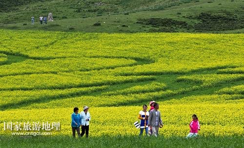 國家旅游地理 甘肅張掖7月19日訊 近日,甘肅省張掖市民樂縣十萬畝油菜進入盛花期,黃色的花海成為河西走廊地區(qū)的一道別致風(fēng)景。新華社發(fā)(王將 攝)