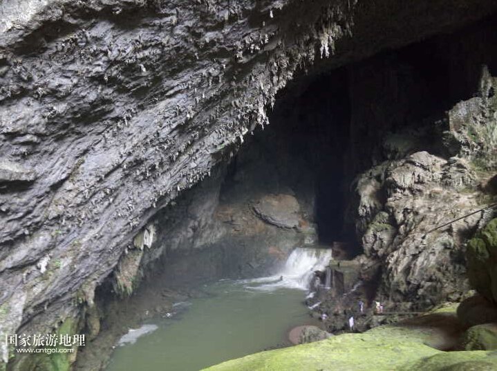 這是羅甸縣的大小井風(fēng)景區(qū)的響水洞天坑,典型的喀斯特地貌景觀。這個(gè)天坑位于大井出水口西側(cè)大約200米處,坑口高500米,寬500,深200米。內(nèi)有暗河,水聲轟鳴,在坑外十里處都可以清晰聽到,故稱為響水洞天坑坑口寬敞明亮,暗河奔流,水花飛揚(yáng),氣勢(shì)磅礴,蔚然壯觀。坑內(nèi)巨大的鐘乳石如寶劍懸掛在墻壁上,有的錯(cuò)落城橋,有的如猛虎下山,千姿百態(tài),美不勝收。