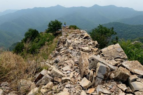 河北省興隆縣境內(nèi)的長城墻體化為碎石堆(7月8日攝)。新華社記者牟宇 攝