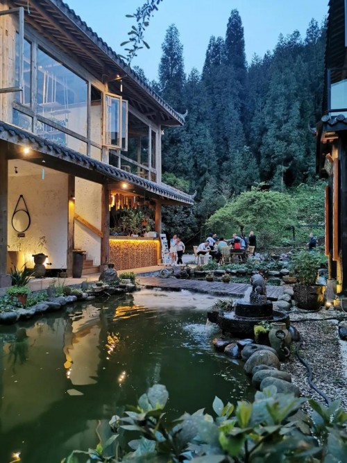 翎谷濯纓位于綿陽(yáng)安州區(qū)曉壩鎮(zhèn),占地十余畝,坐落于風(fēng)景秀麗、集聚民俗風(fēng)情的棗皮走廊蝴蝶谷中部齊心村。整座民宿依山傍水,民宿內(nèi)的山景房和湖景房都可以在享筑免費(fèi)預(yù)約入住。民宿內(nèi)還有特色的餐飲和茶點(diǎn),在湖邊泡一杯清茶,談天說(shuō)地,舒適愜意。